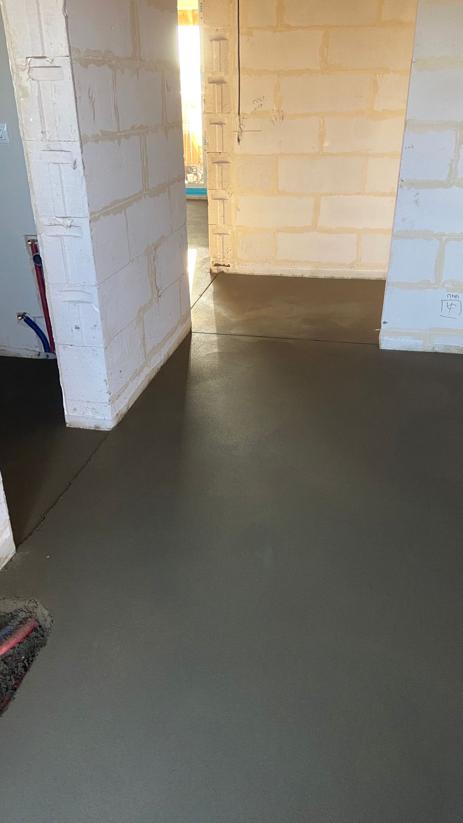 На объекте завершились работы по устройству коммуникаций холодного горячего водоснабжения, отопления, электроснабжения. Выполнена полусухая стяжка.